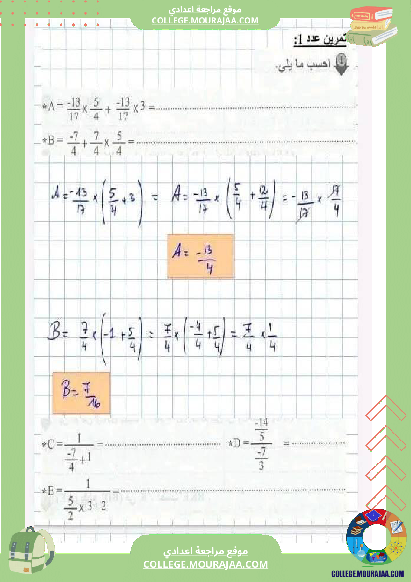 تمارين مراجعة سنة 8