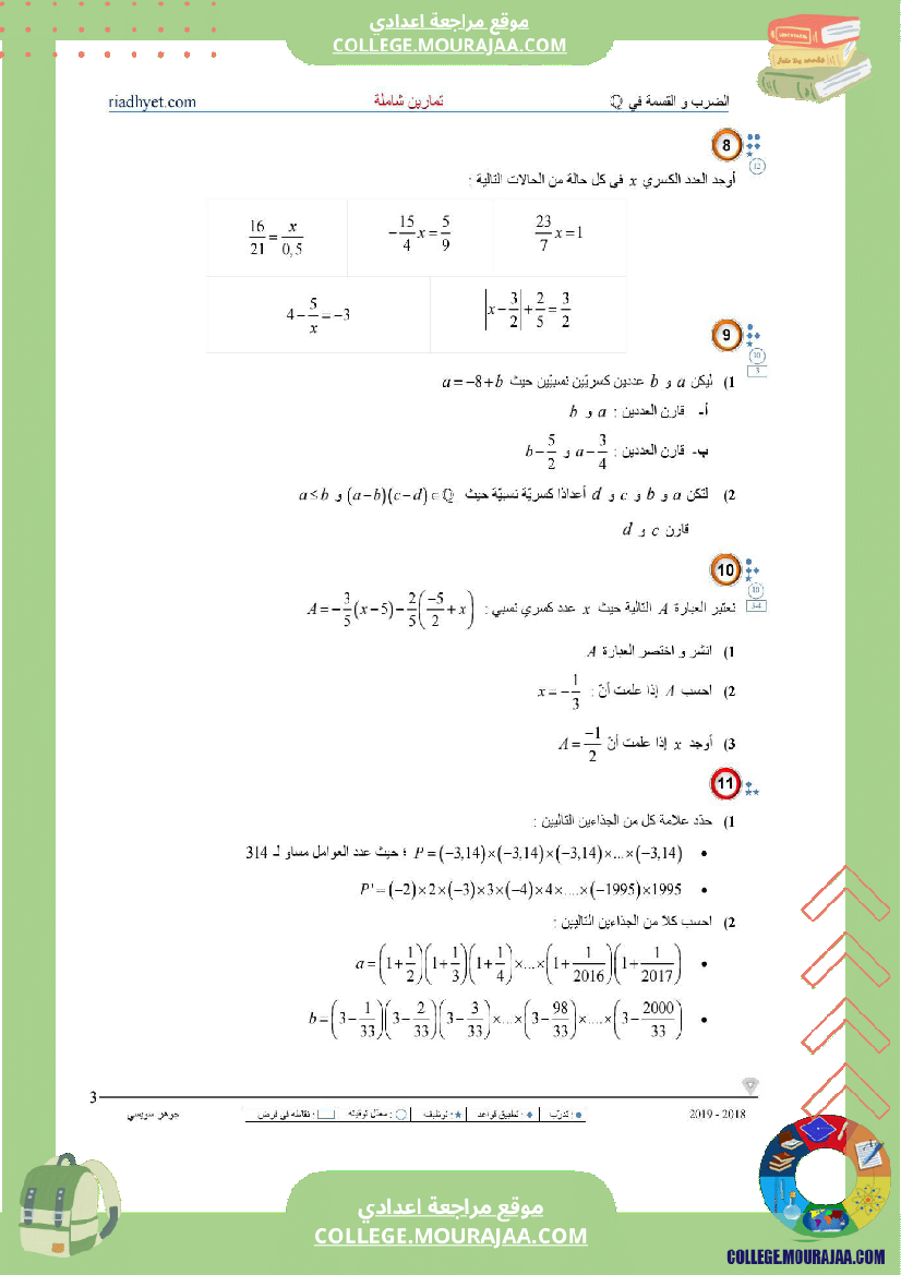 تمارين شاملة سنة تاسعة