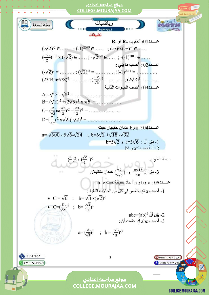 رياضيات سنة تاسعة
