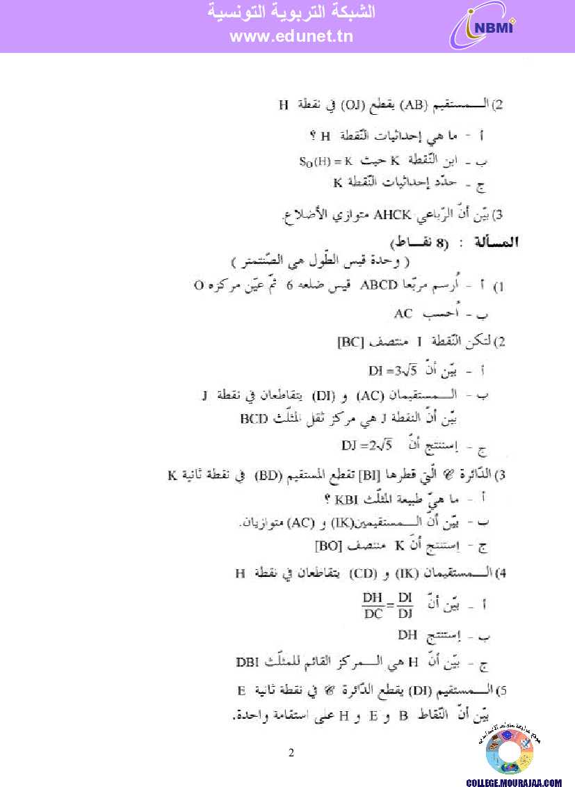 مناظرة شهادة ختم التعليم الاساسي في مادة الرياضيات لسنة 2008