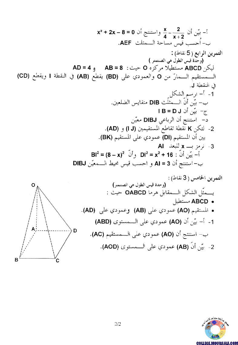 امتحان الرياضيات مناظرة النوفيام سنة 2010