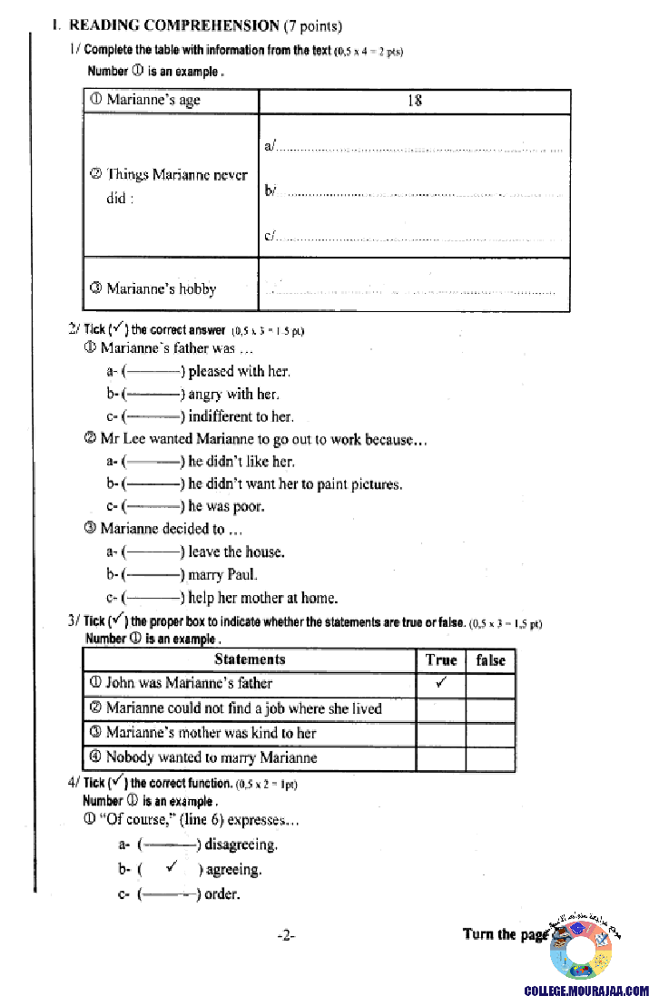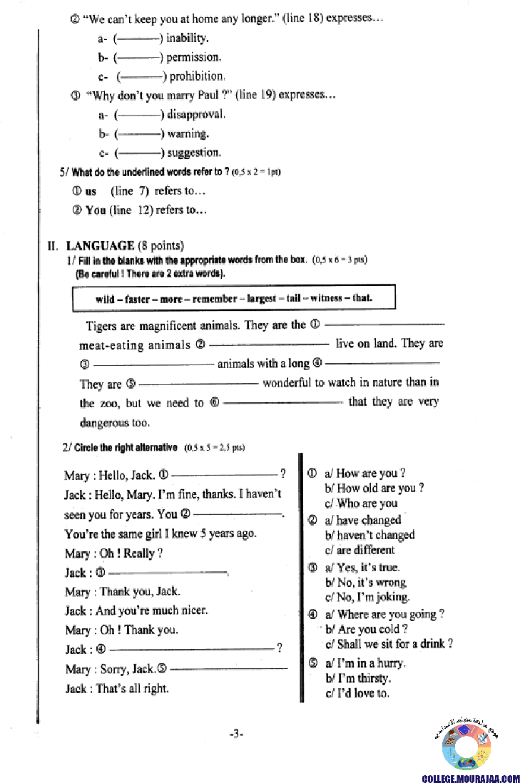 امتحان الانقليزية مناظرة النوفيام سنة 2002