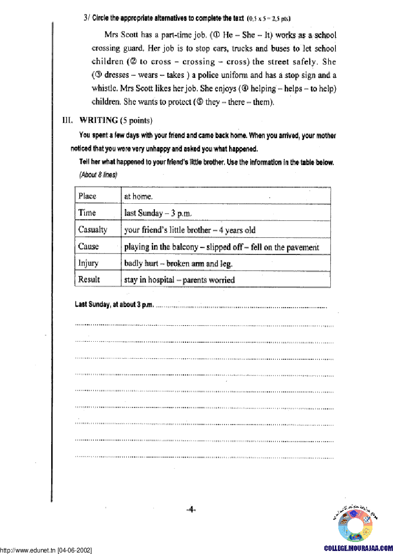 مناظرة شهادة ختم التعليم الاساسي في مادة الانقليزية لسنة 2002
