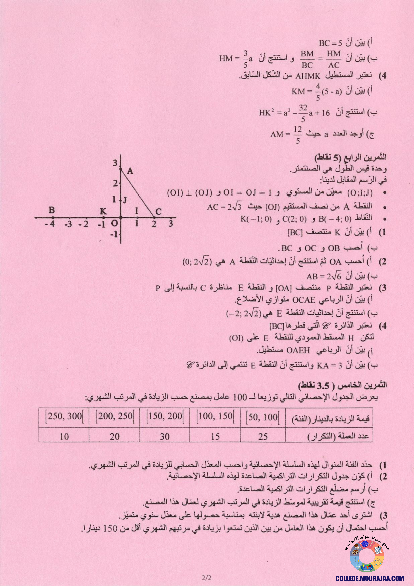 امتحان الرياضيات مناظرة النوفيام سنة 2019