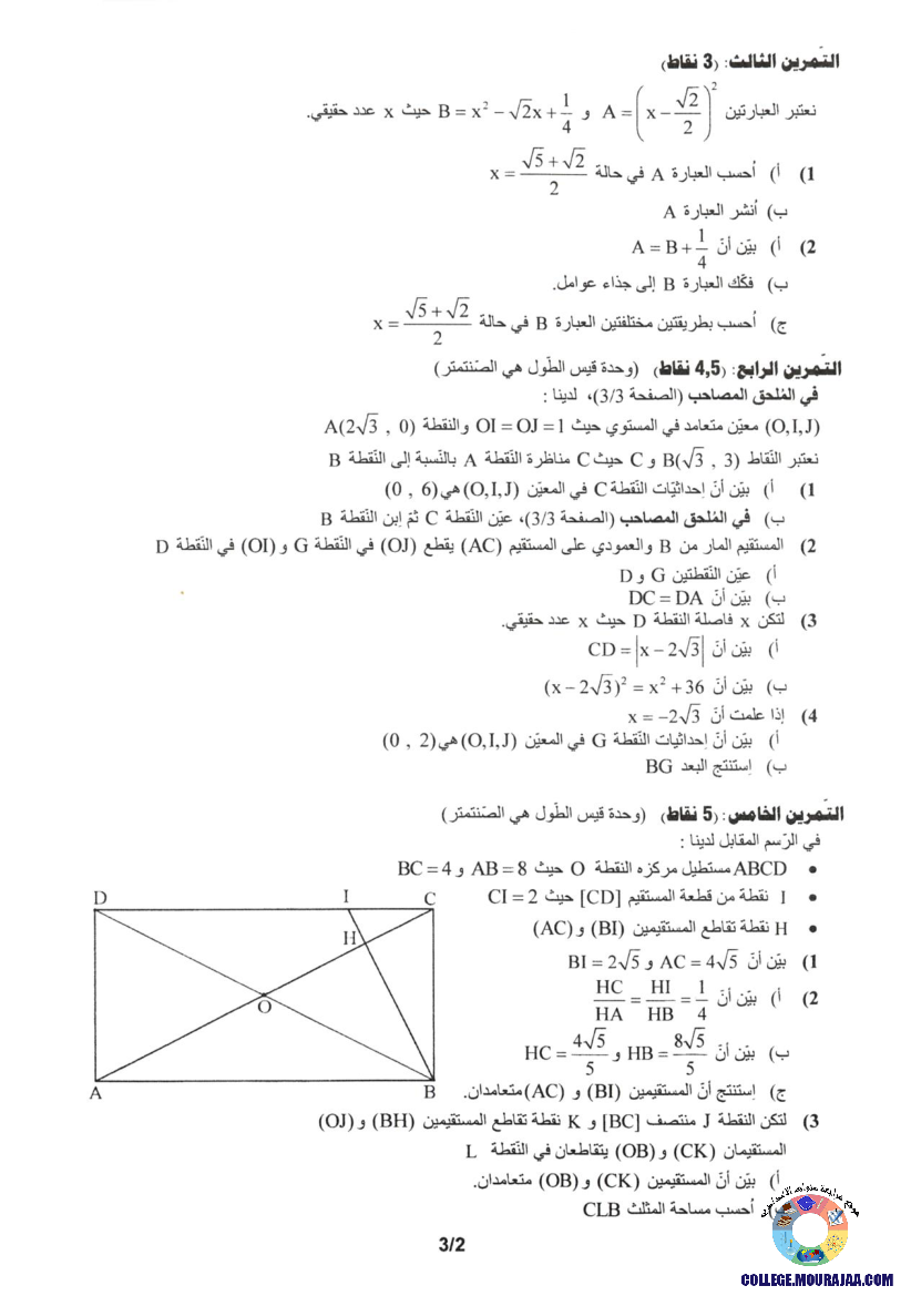 تحميل امتحان الرياضيات مناظرة النوفيام سنة 2020 في صيغة ملف او صور