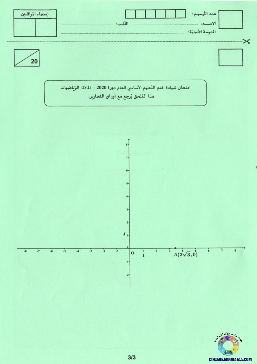 مناظرة شهادة ختم التعليم الاساسي في مادة الرياضيات لسنة 2020