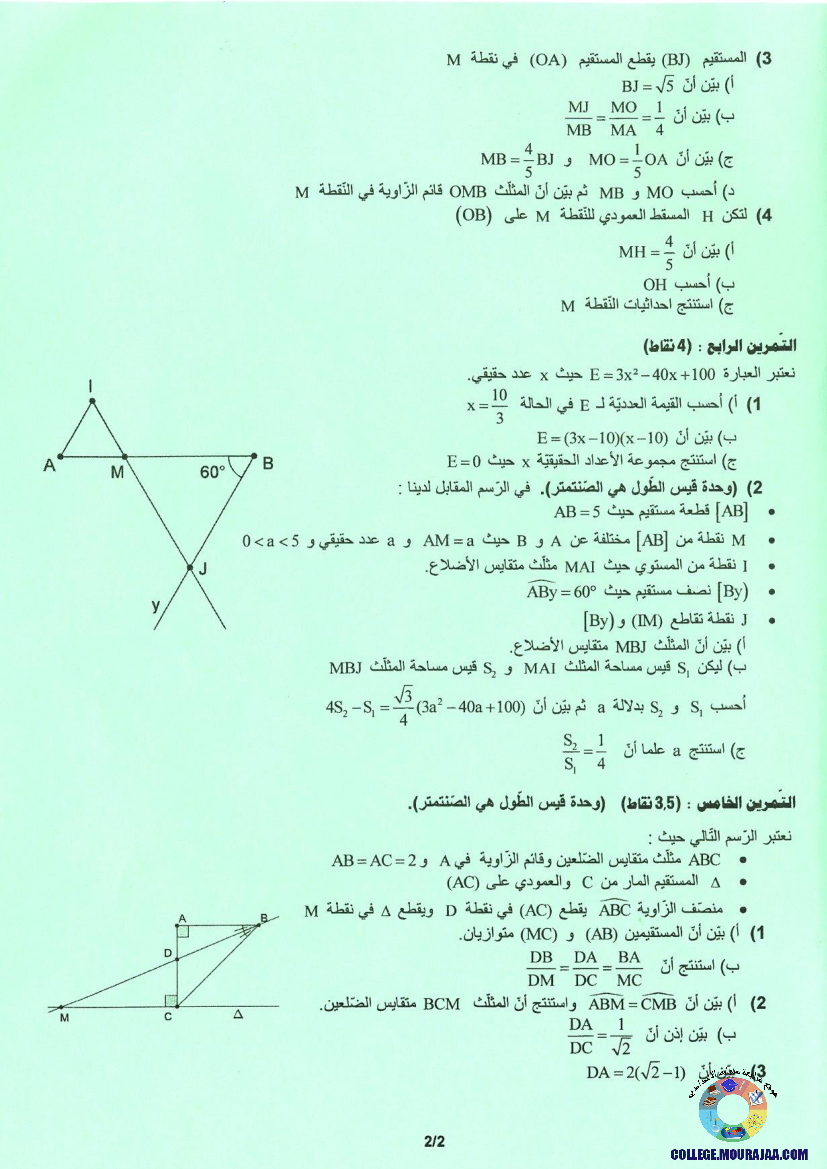 امتحان الرياضيات مناظرة النوفيام سنة 2021