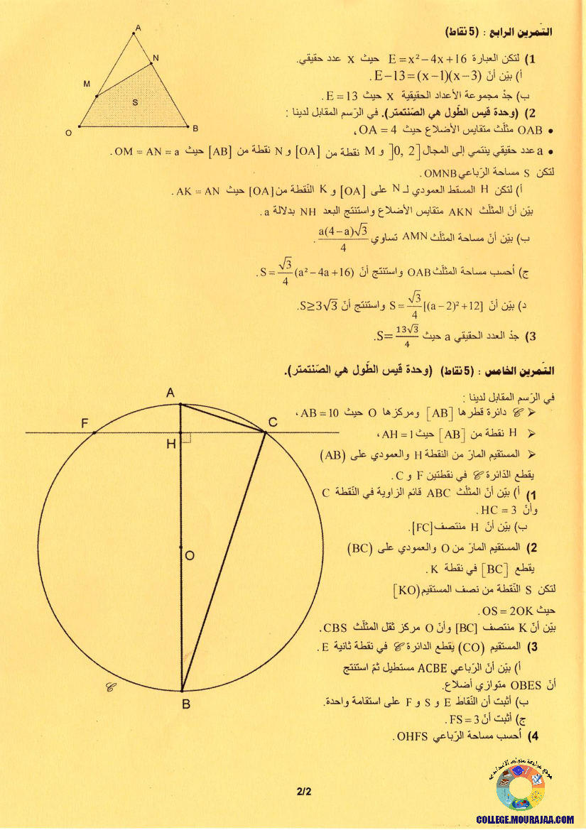امتحان الرياضيات مناظرة النوفيام سنة 2022