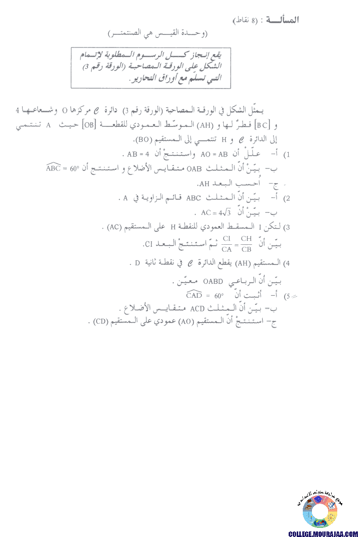 مناظرة شهادة ختم التعليم الاساسي في مادة الرياضيات لسنة 2001