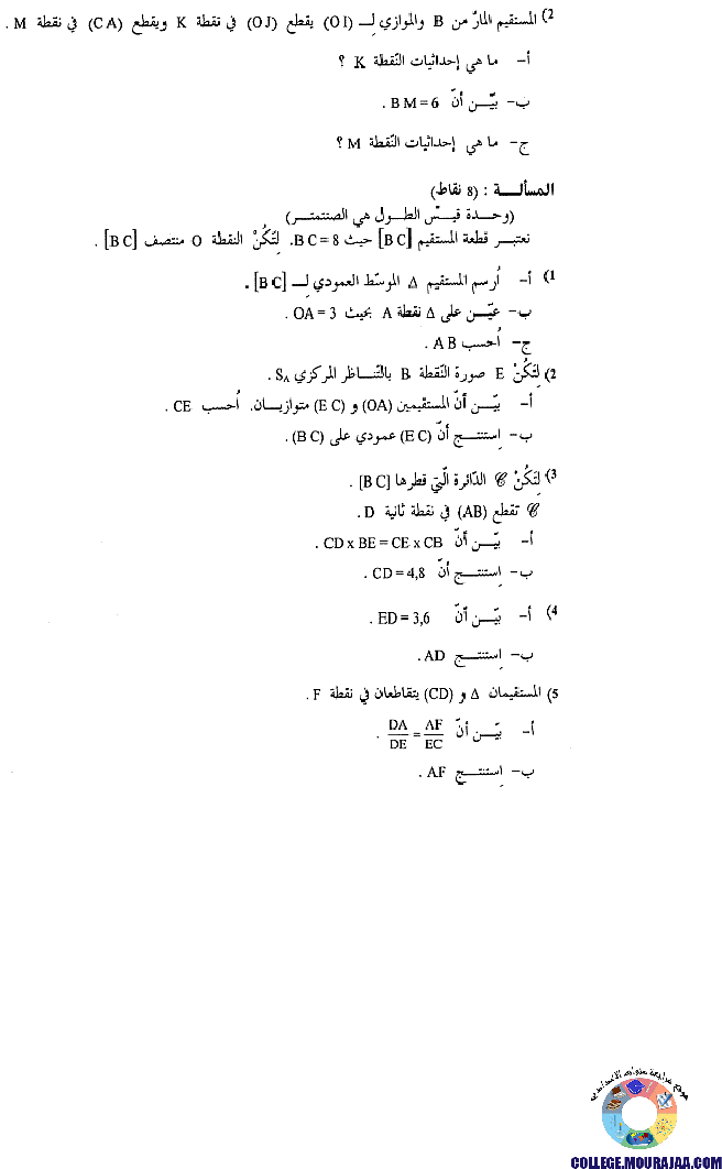 امتحان الرياضيات مناظرة النوفيام سنة 2003