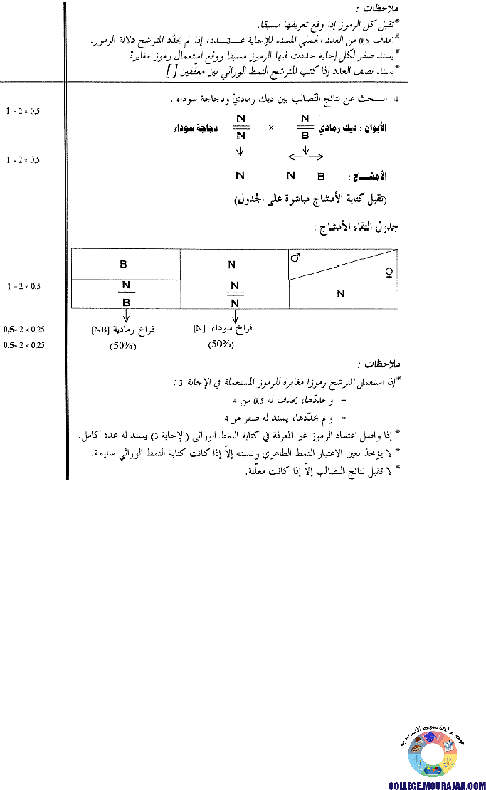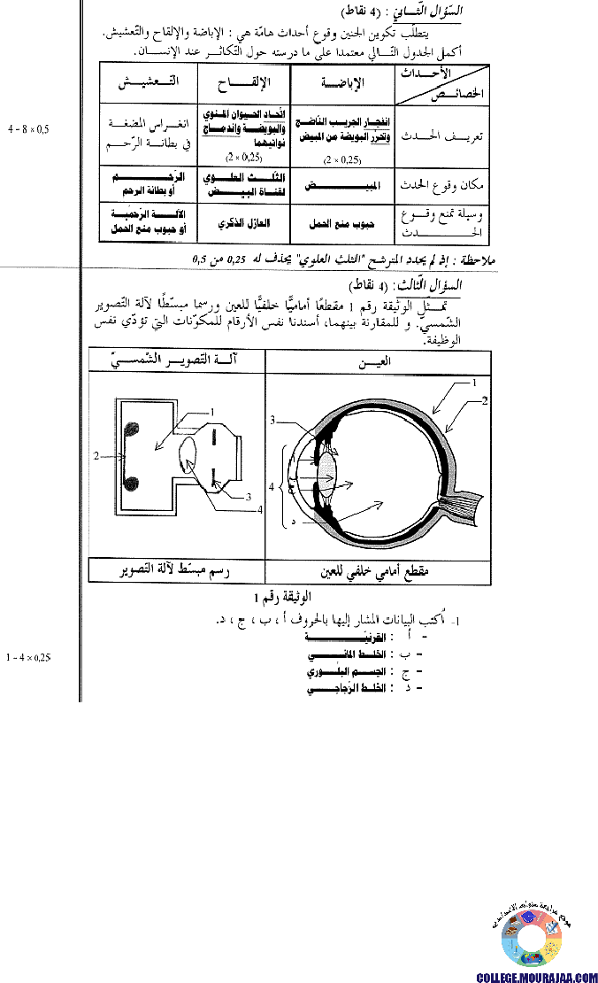 اصلاح امتحان علوم الحياة و الارض مناظرة النوفيام سنة 2003