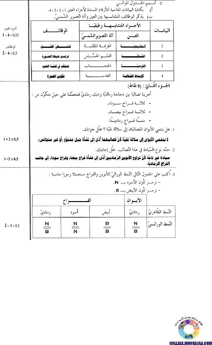 اصلاح مناظرة شهادة ختم التعليم الاساسي في مادة علوم الحياة و الارض لسنة 2003