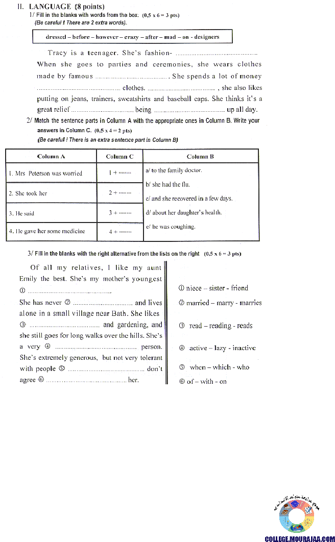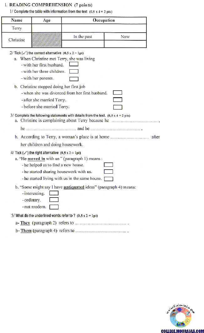 امتحان الانقليزية مناظرة النوفيام سنة 2003