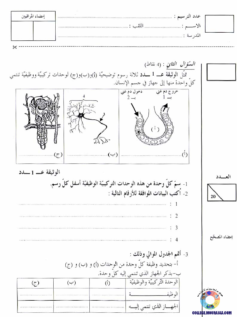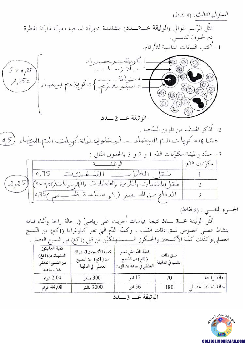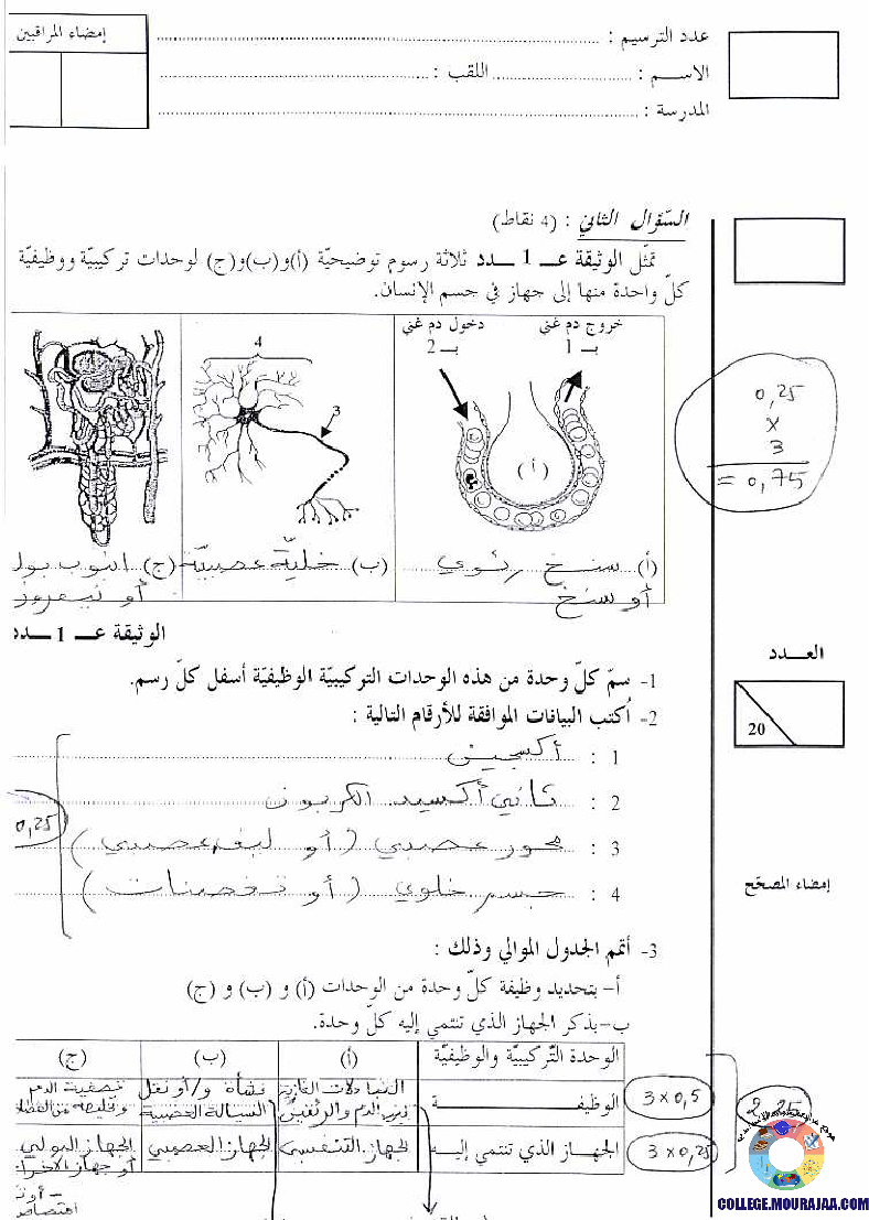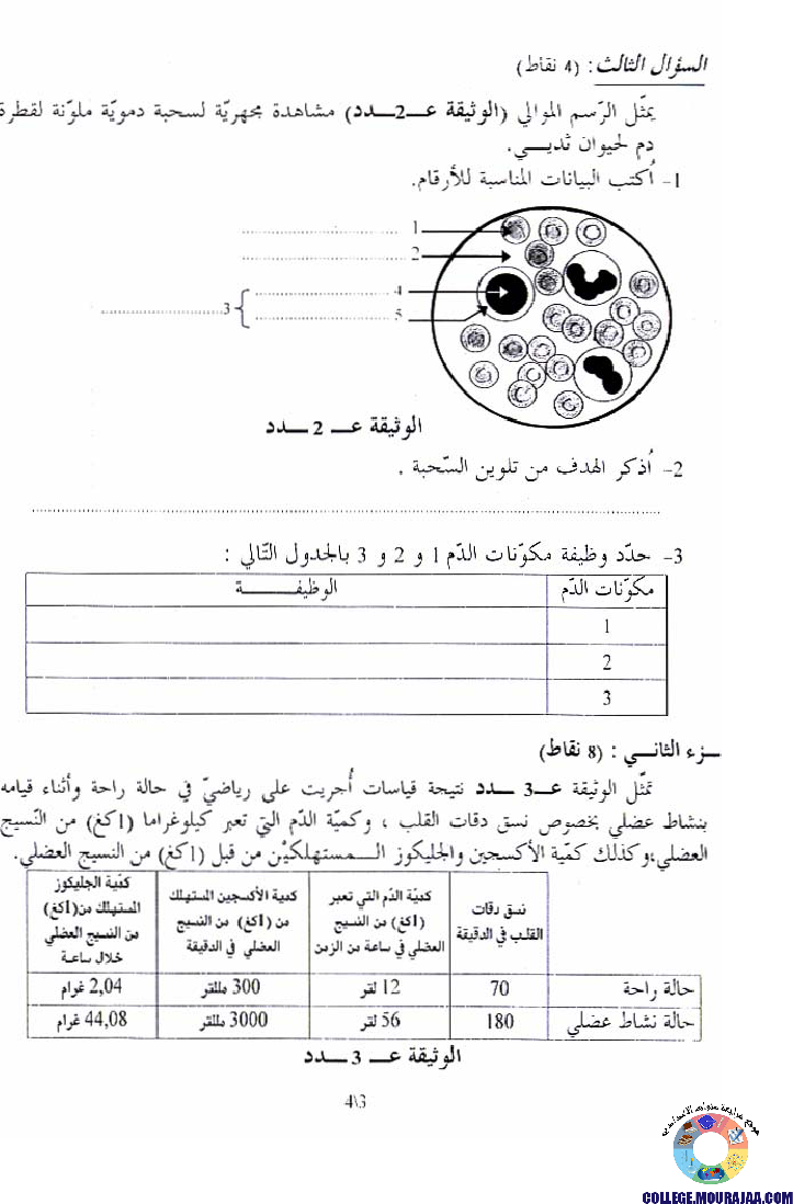 امتحان علوم الحياة و الارض مناظرة النوفيام سنة 2005