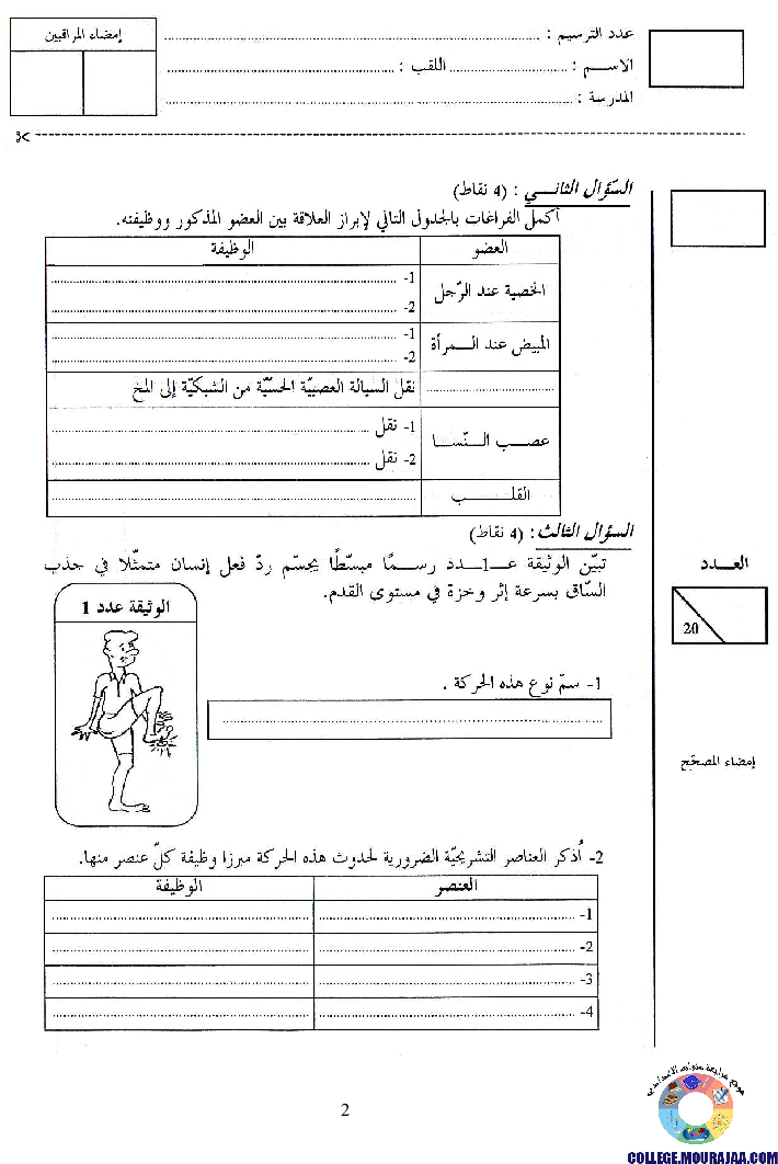 امتحان علوم الحياة و الارض مناظرة النوفيام سنة 2007