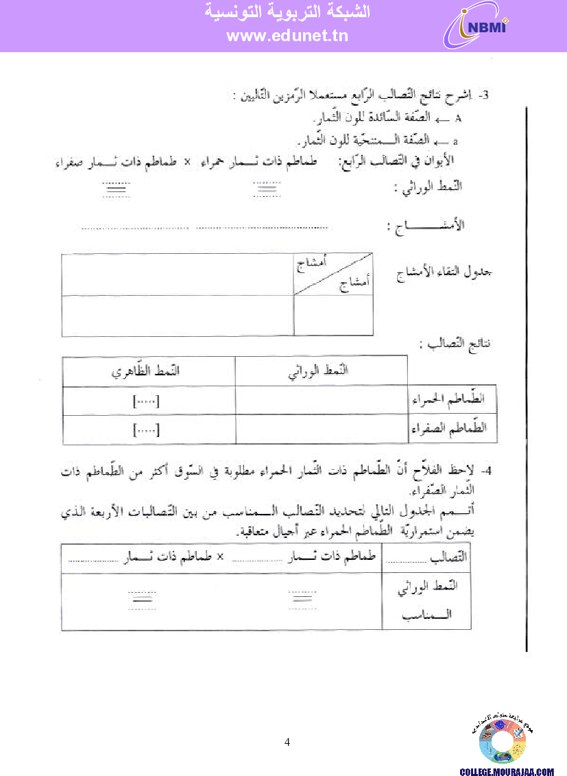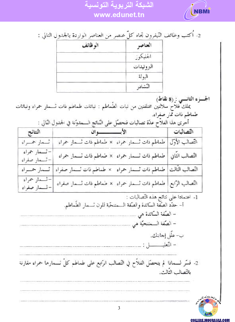 امتحان علوم الحياة و الارض مناظرة النوفيام سنة 2008