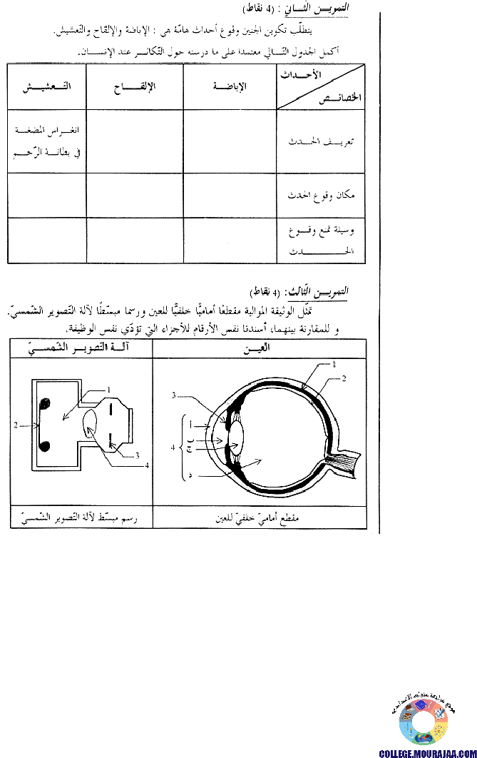 امتحان علوم الحياة و الارض مناظرة النوفيام سنة 2003