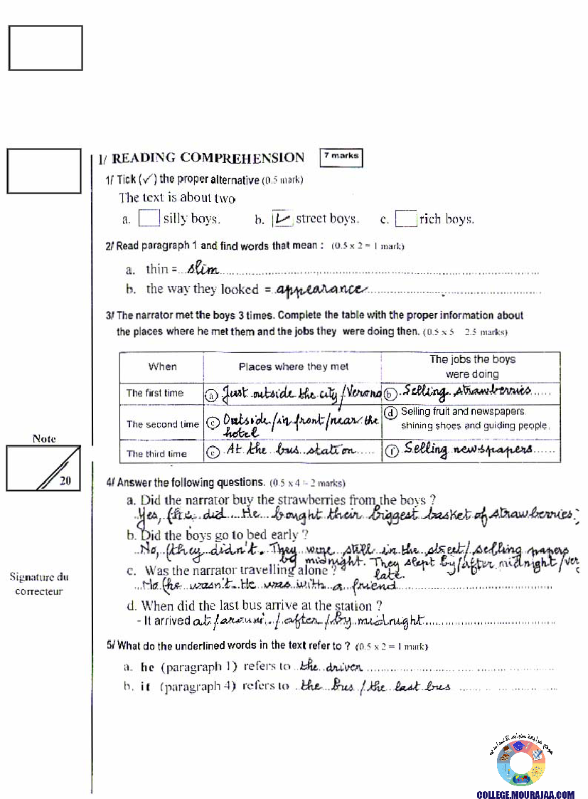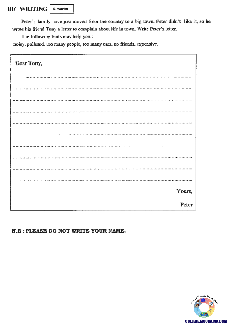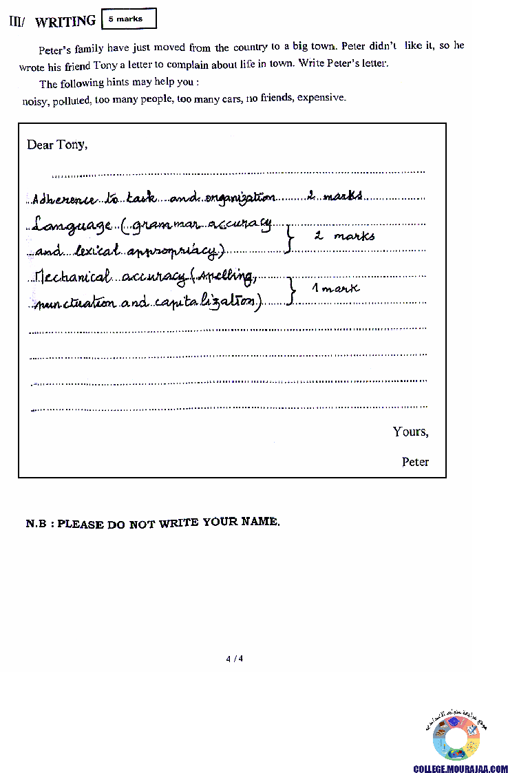 امتحان الانقليزية مناظرة النوفيام سنة 2005