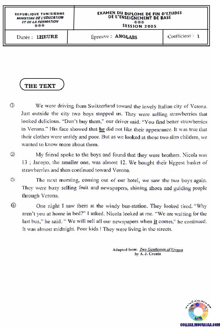 مناظرة شهادة ختم التعليم الاساسي في مادة الانقليزية لسنة 2005