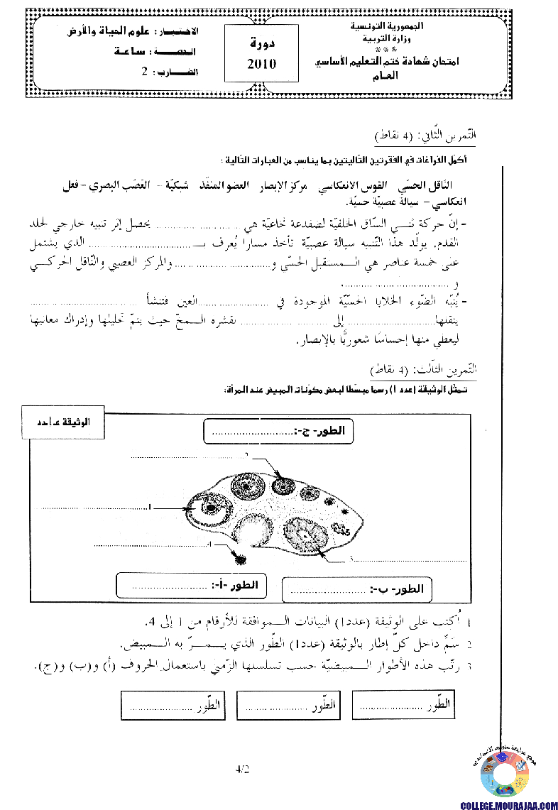 مناظرة شهادة ختم التعليم الاساسي في مادة علوم الحياة و الارض لسنة 2010