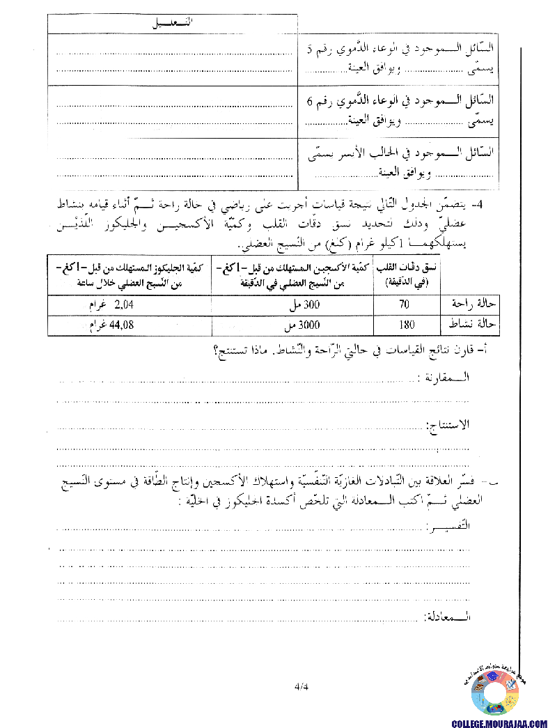 امتحان علوم الحياة و الارض مناظرة النوفيام سنة 2010