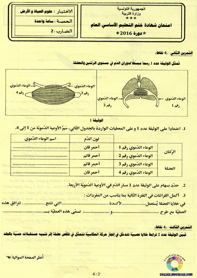 مناظرة شهادة ختم التعليم الاساسي في مادة علوم الحياة و الارض لسنة 2016