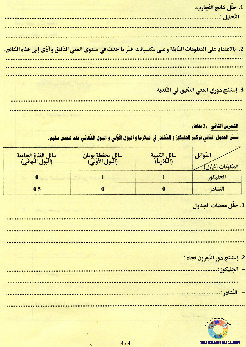 امتحان علوم الحياة و الارض مناظرة النوفيام سنة 2016