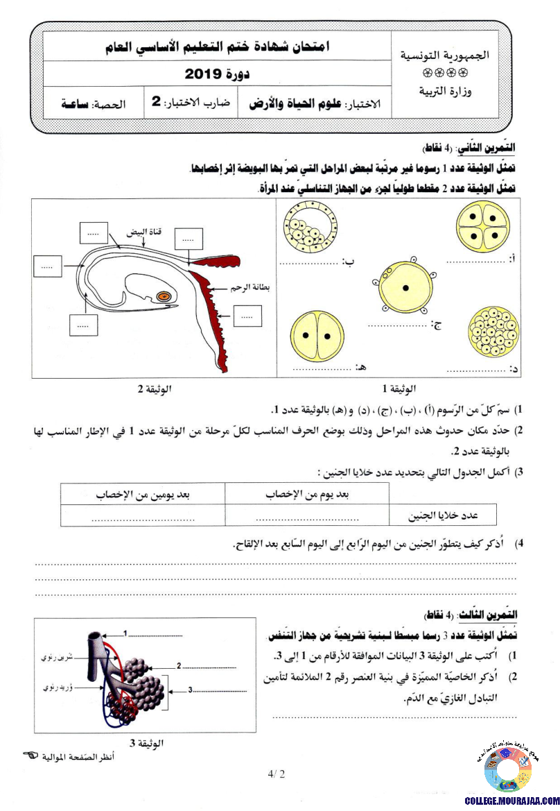 مناظرة شهادة ختم التعليم الاساسي في مادة علوم الحياة و الارض لسنة 2019