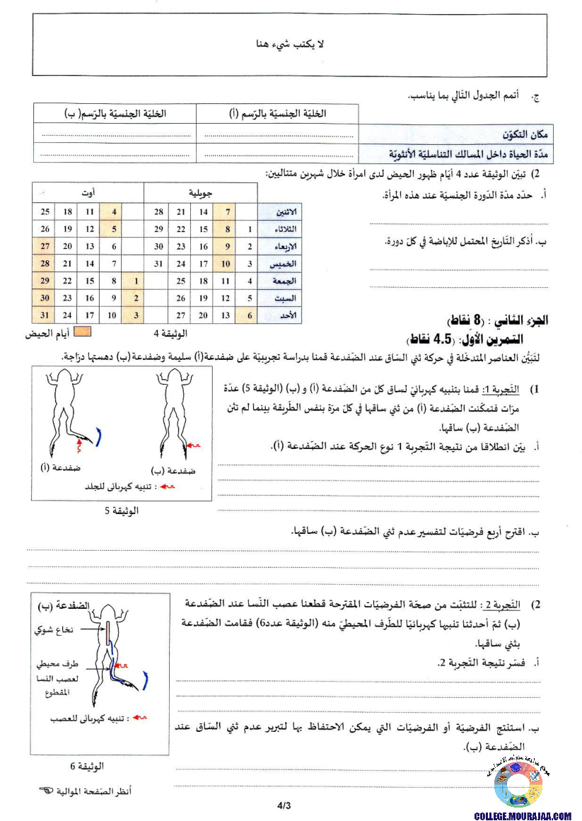 امتحان علوم الحياة و الارض مناظرة النوفيام سنة 2021