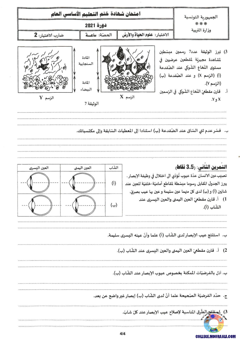مناظرة شهادة ختم التعليم الاساسي في مادة علوم الحياة و الارض لسنة 2021