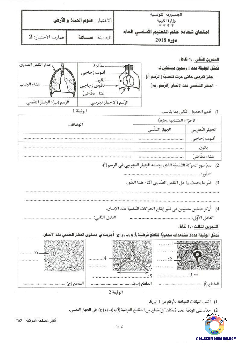 مناظرة شهادة ختم التعليم الاساسي في مادة علوم الحياة و الارض لسنة 2018