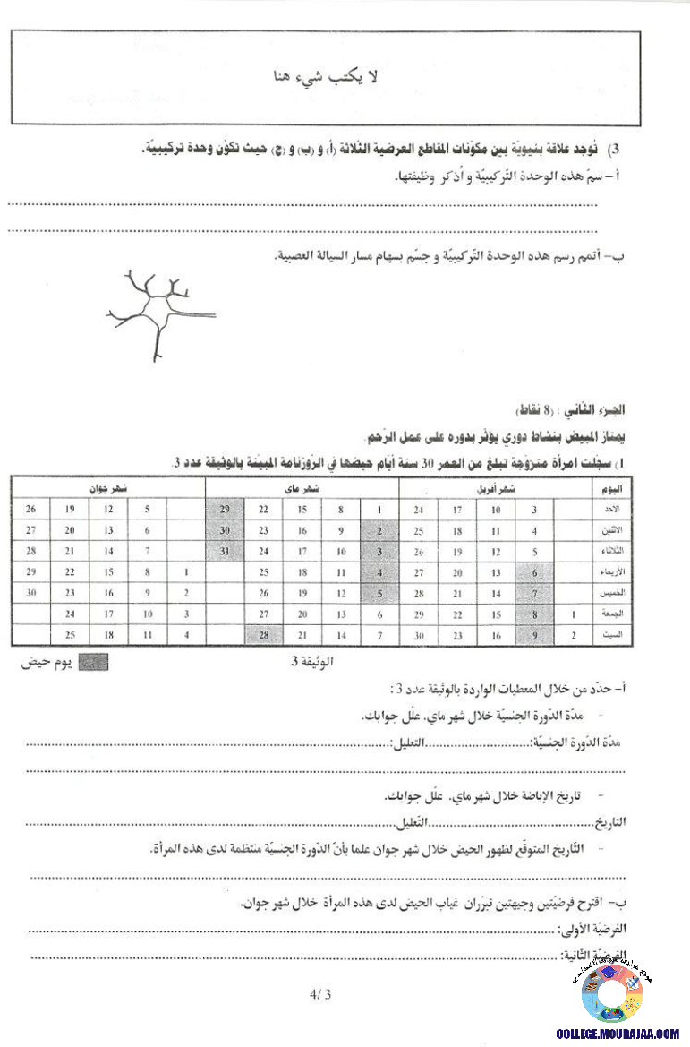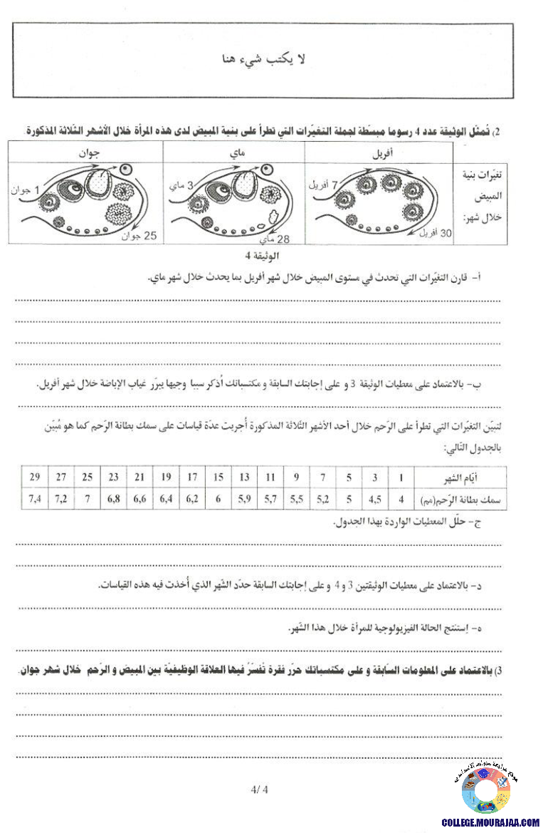 امتحان علوم الحياة و الارض مناظرة النوفيام سنة 2018