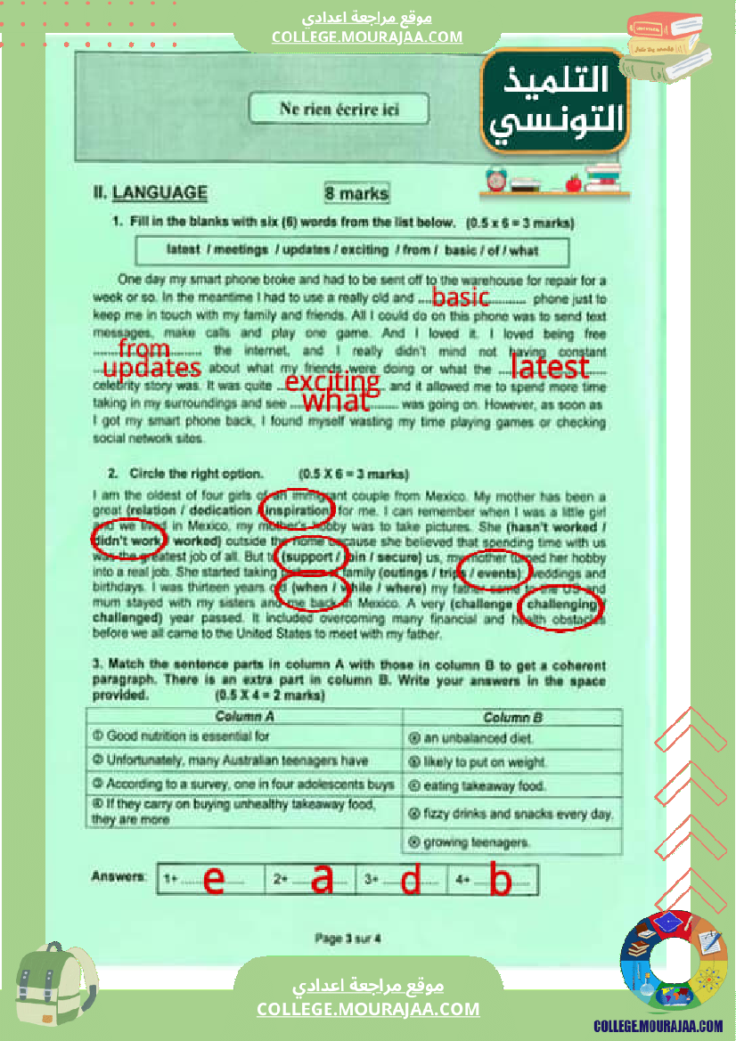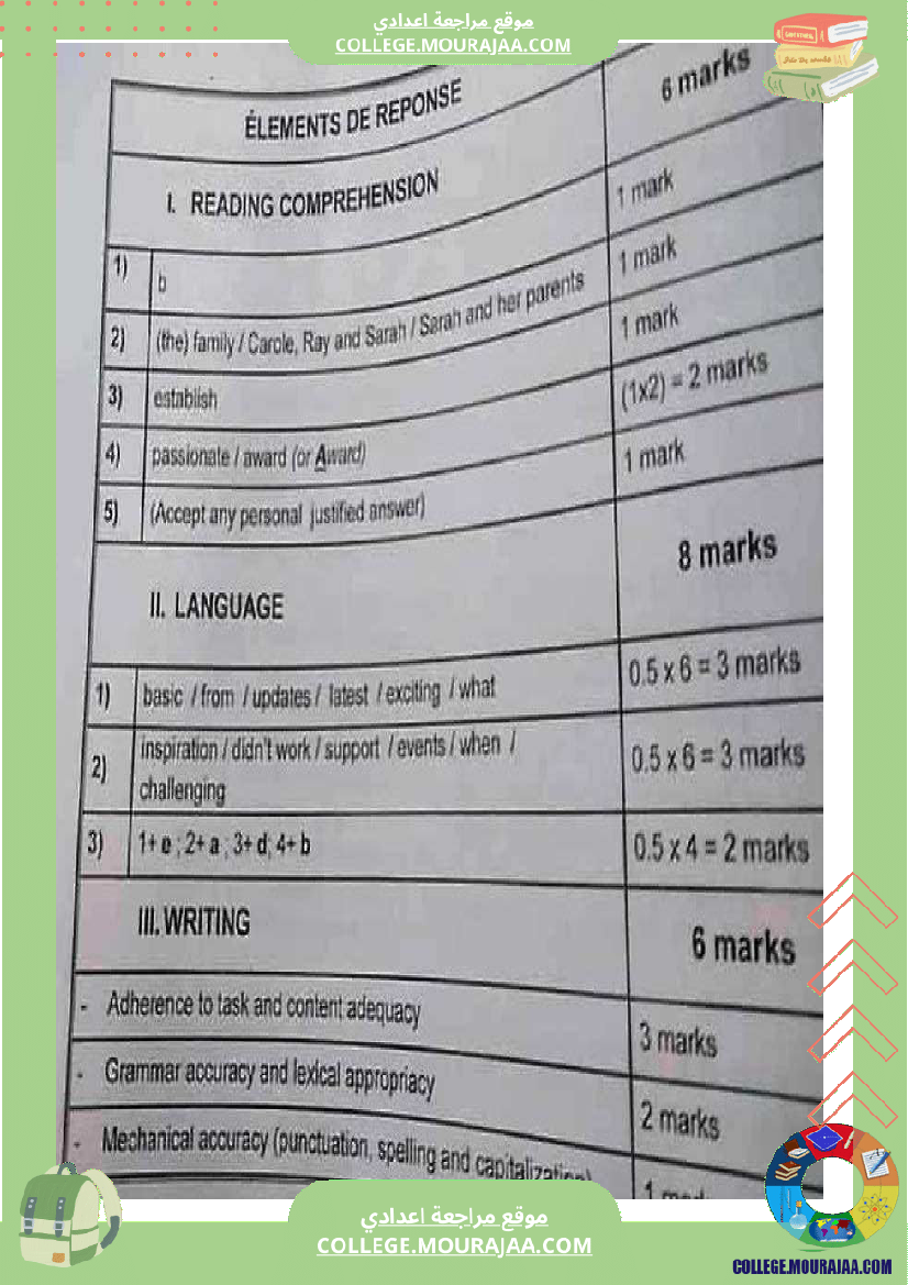 اصلاح اختبار مناظرة شهادة ختم التعليم الاساسي في مادة الانقليزية لسنة 2020