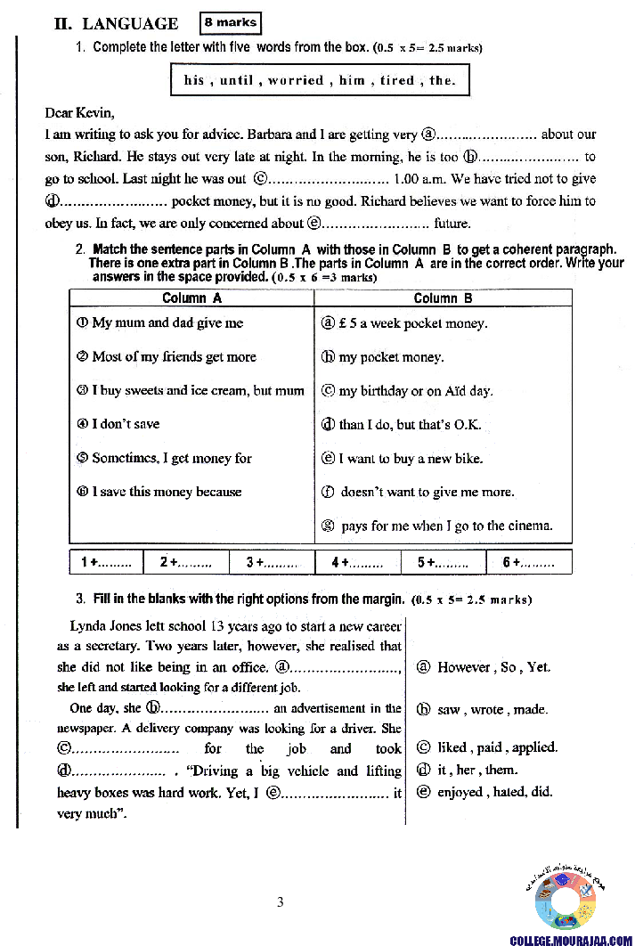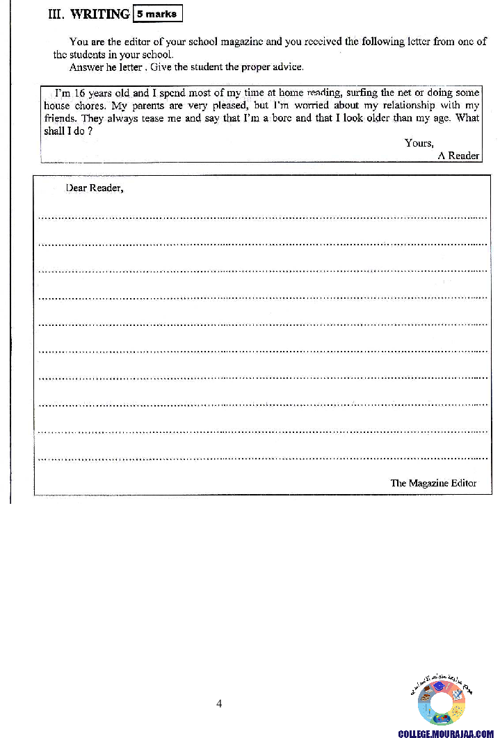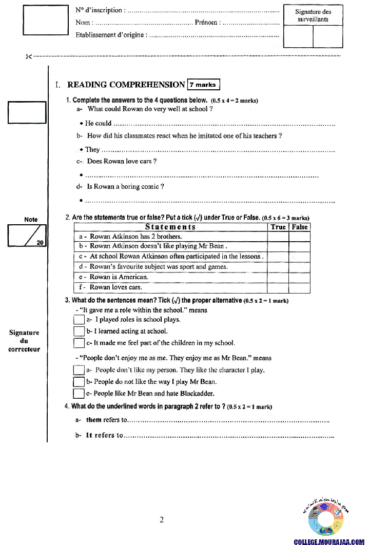 امتحان الانقليزية مناظرة النوفيام سنة 2007