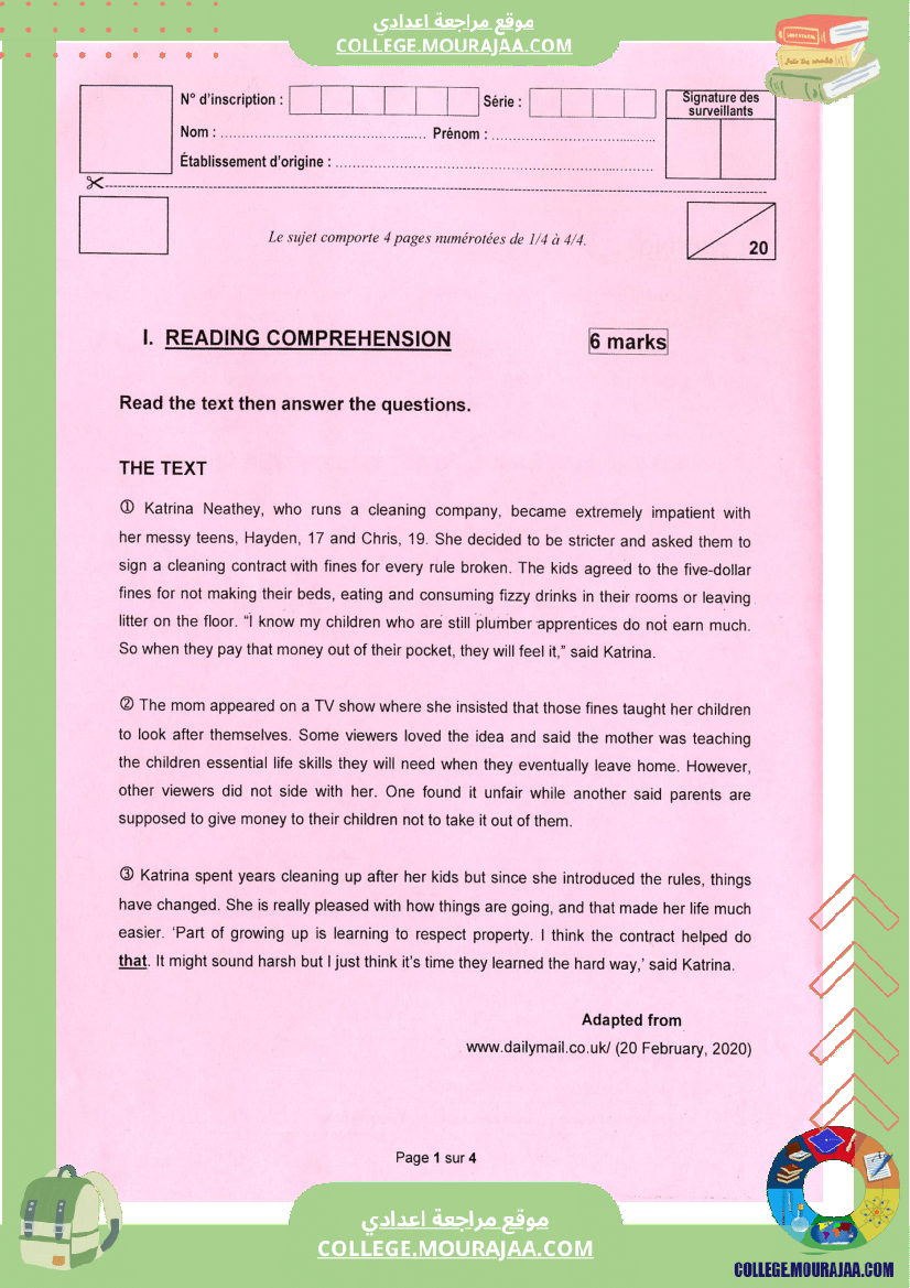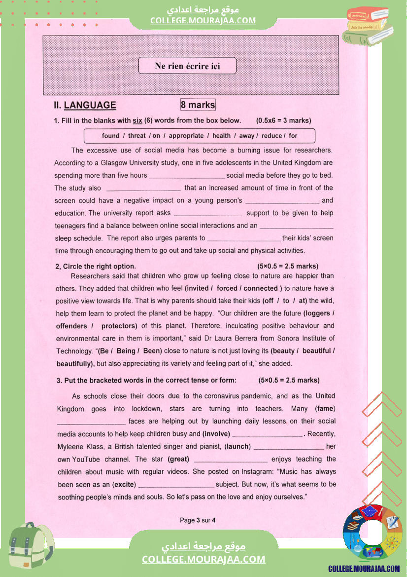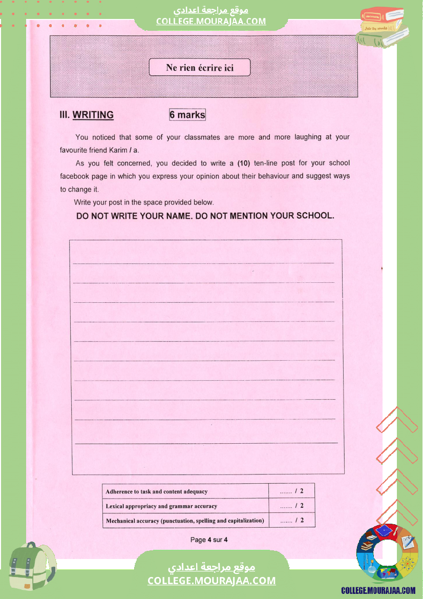 تحميل اختبار الانقليزية مناظرة النوفيام سنة 2022 في صيغة ملف او صور