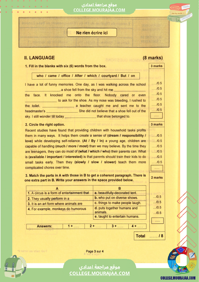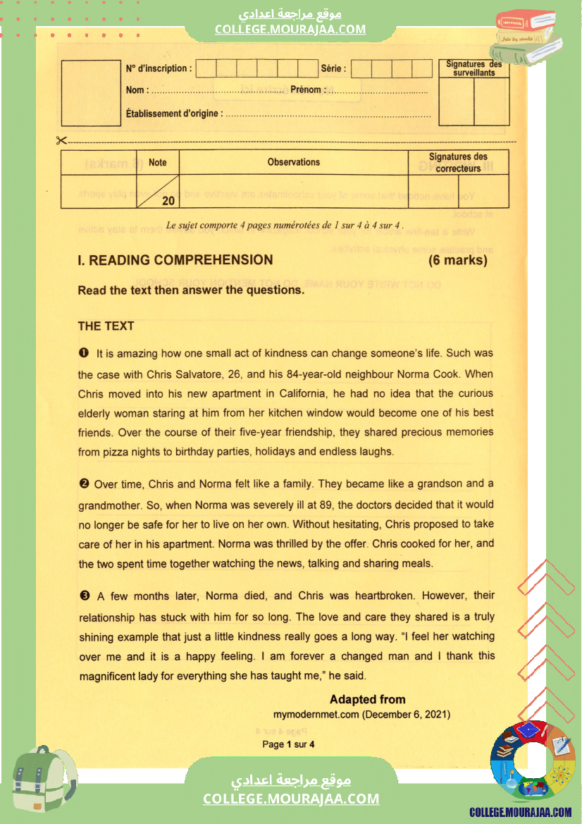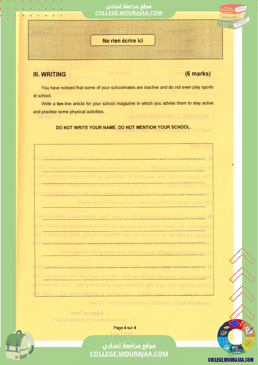 تحميل اختبار الانقليزية مناظرة النوفيام سنة 2023 في صيغة ملف او صور