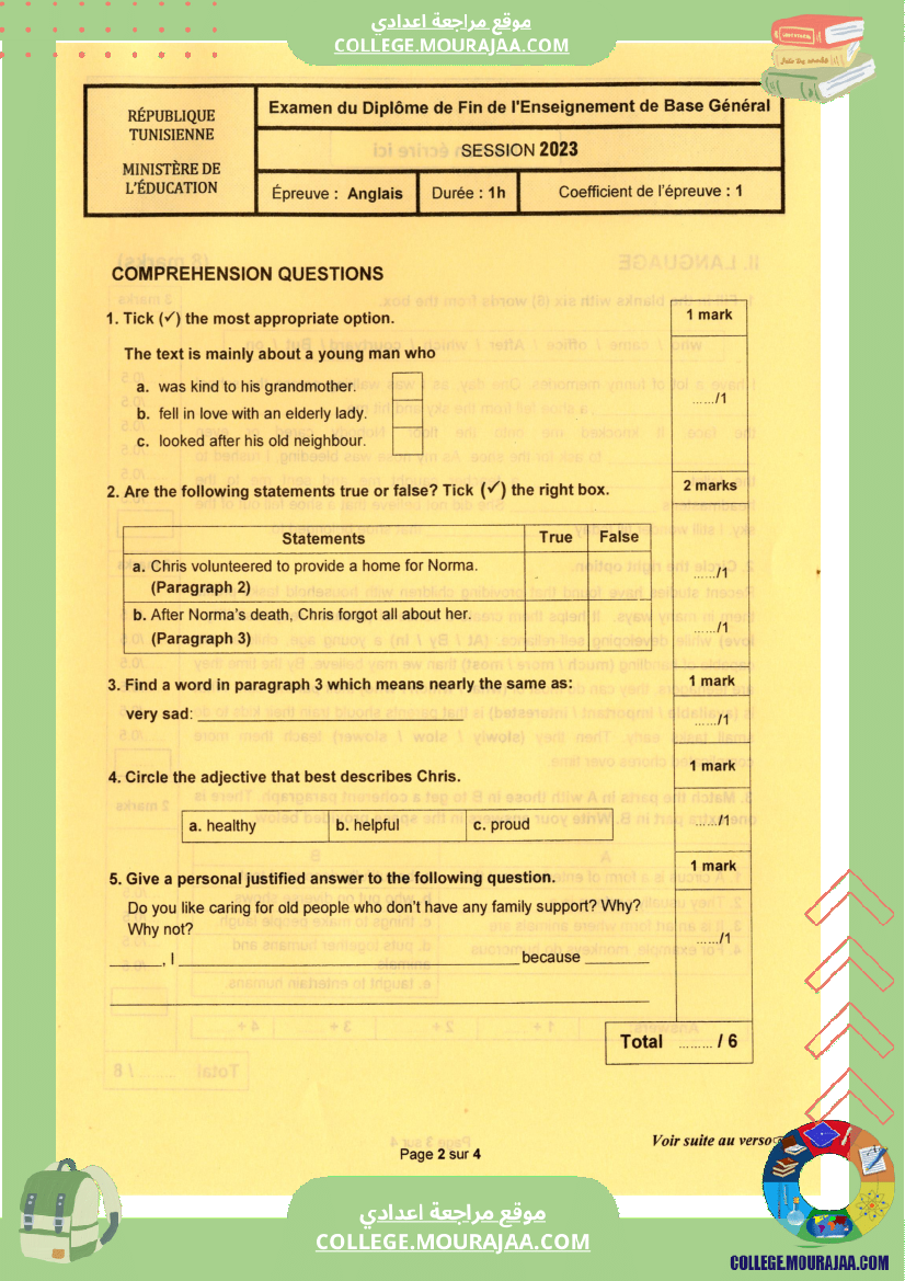 اختبار مناظرة شهادة ختم التعليم الاساسي في مادة الانقليزية لسنة 2023