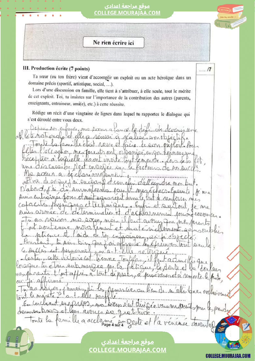 تحميل اصلاح اختبار الفرنسية مناظرة النوفيام سنة 2023 في صيغة ملف او صور