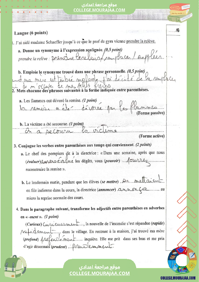 اصلاح اختبار مناظرة شهادة ختم التعليم الاساسي في مادة الفرنسية لسنة 2023