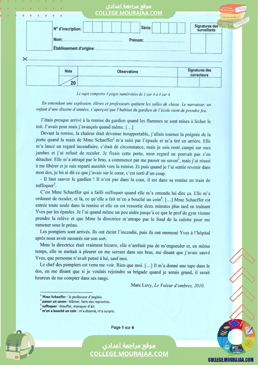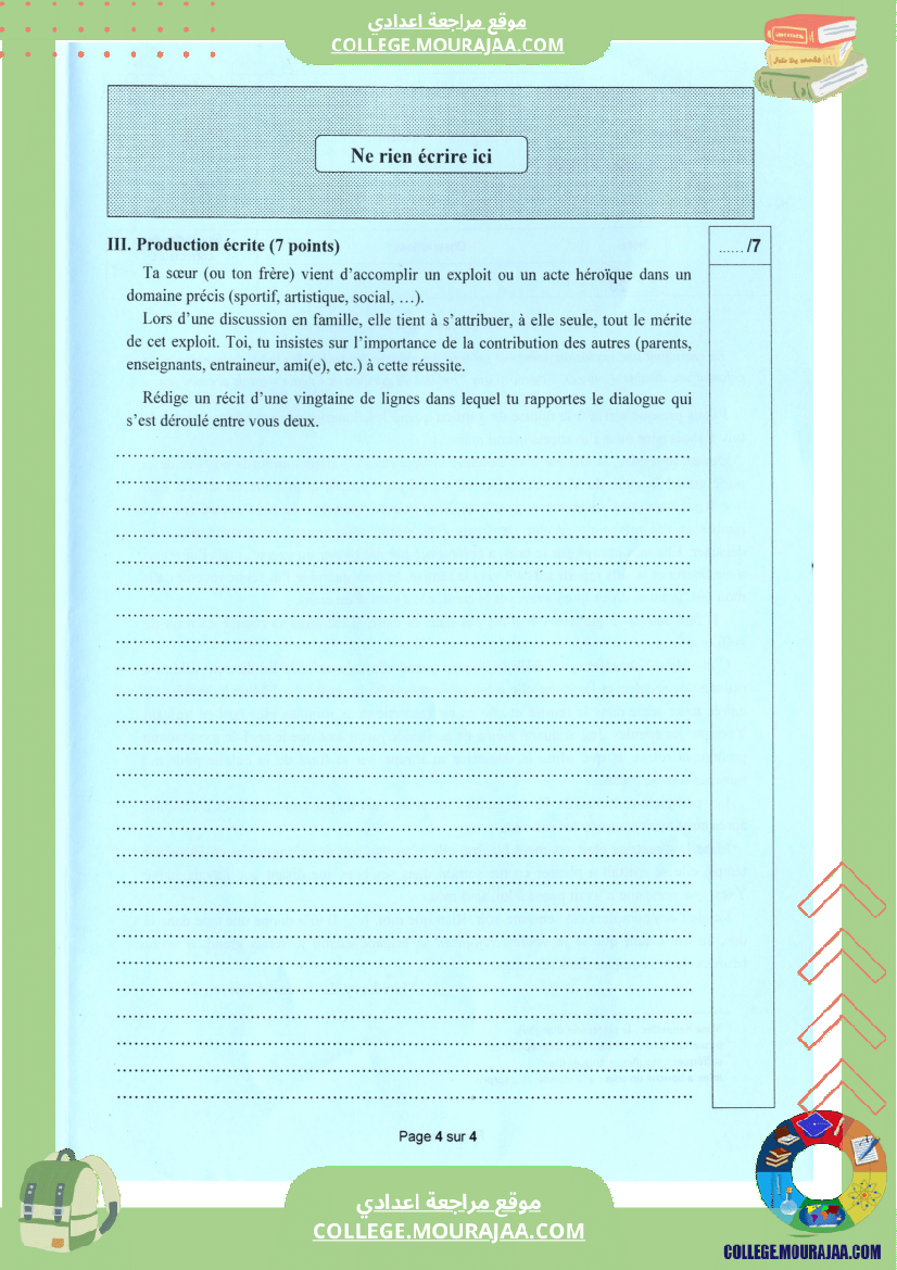 تحميل اختبار الفرنسية مناظرة النوفيام سنة 2023 في صيغة ملف او صور