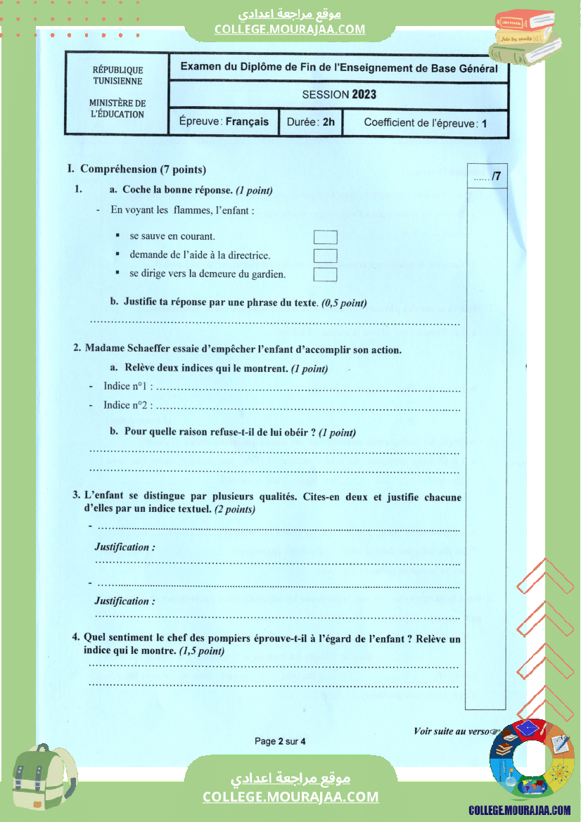 اختبار مناظرة شهادة ختم التعليم الاساسي في مادة الفرنسية لسنة 2023