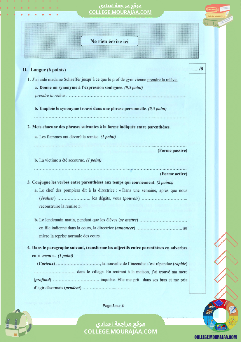 اختبار الفرنسية مناظرة النوفيام سنة 2023