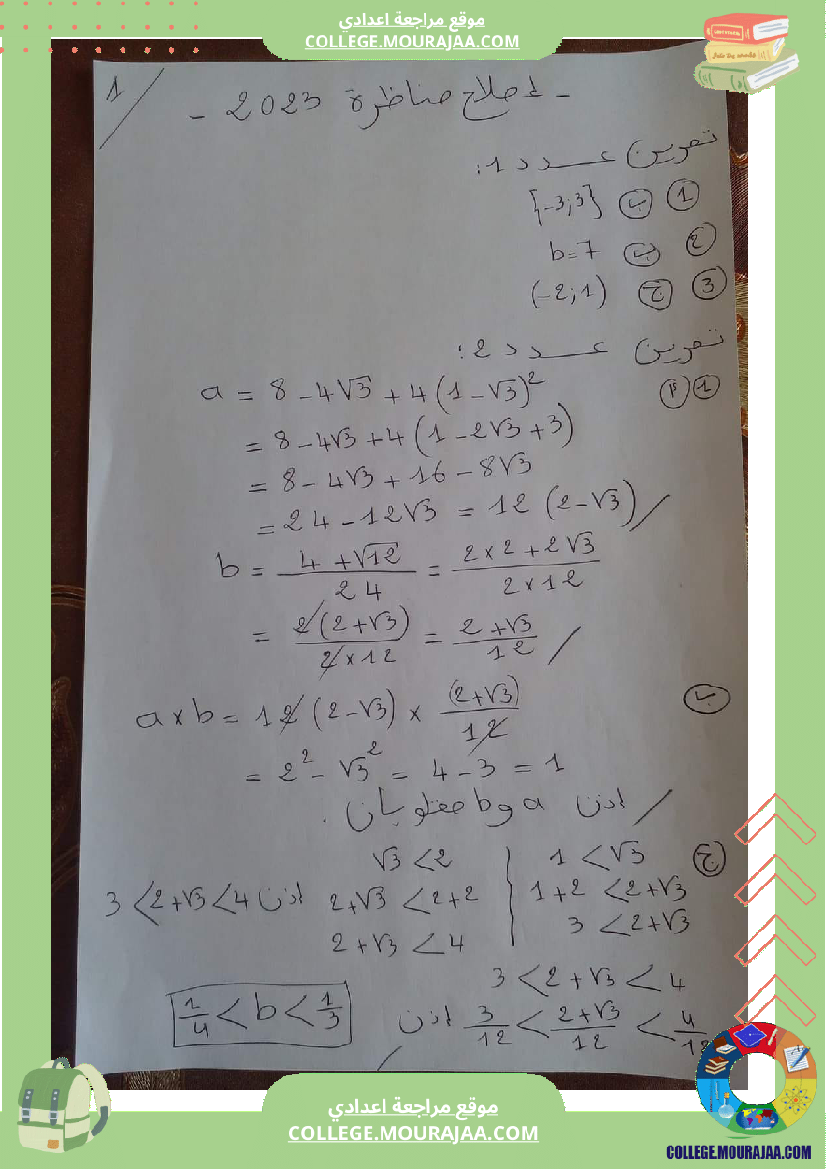 تحميل اصلاح اختبار الرياضيات مناظرة النوفيام سنة 2023 في صيغة ملف او صور