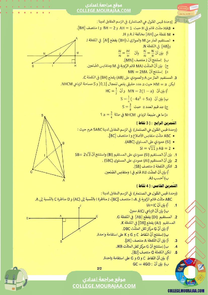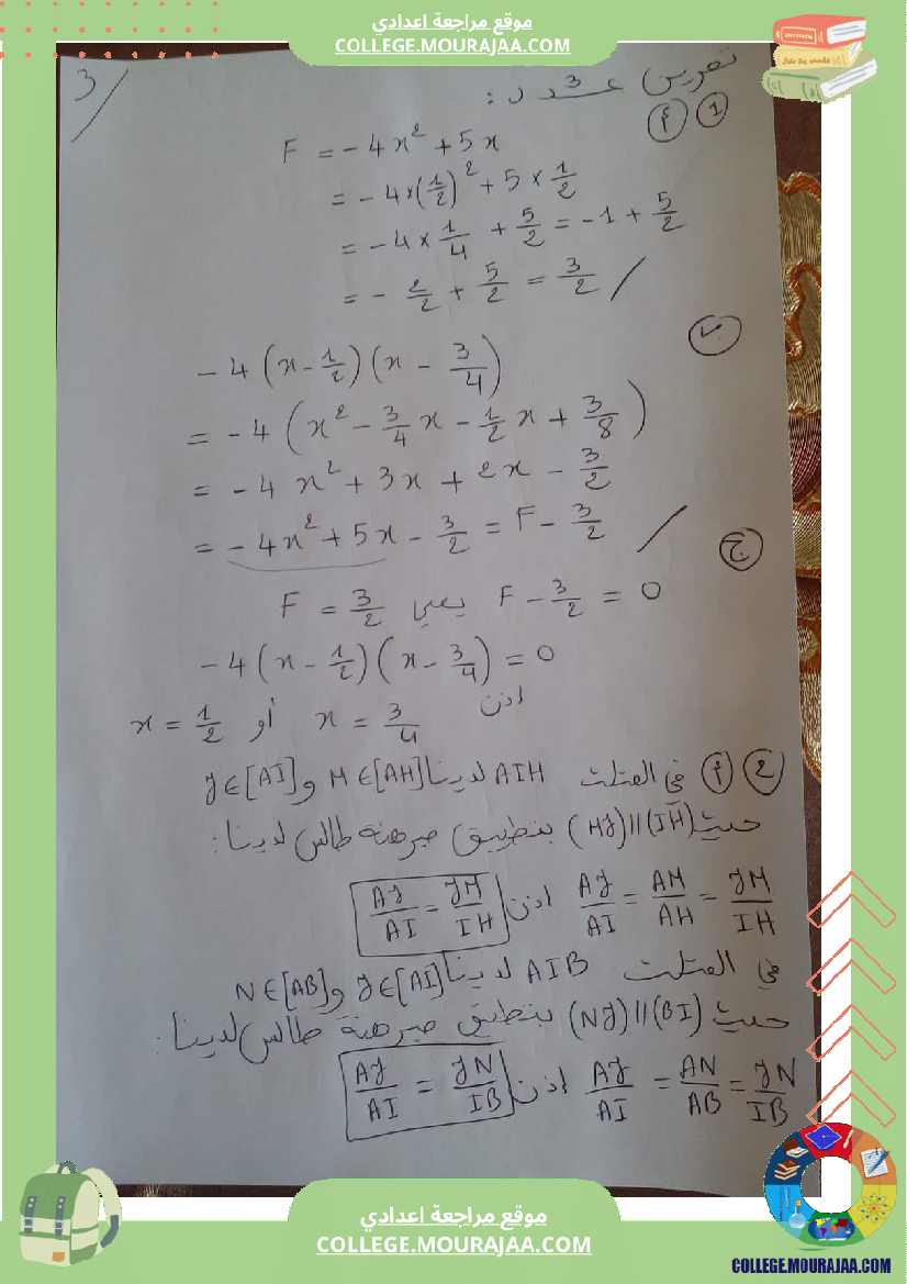 اصلاح اختبار الرياضيات مناظرة النوفيام سنة 2023