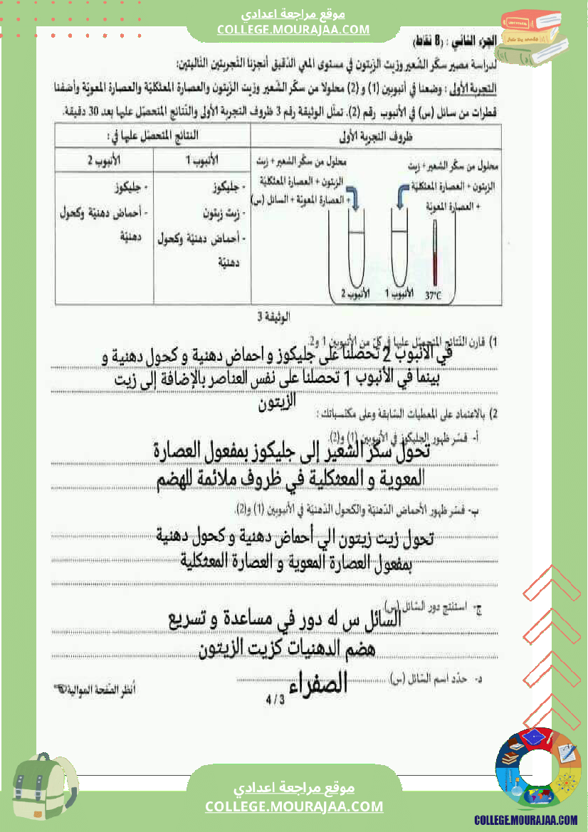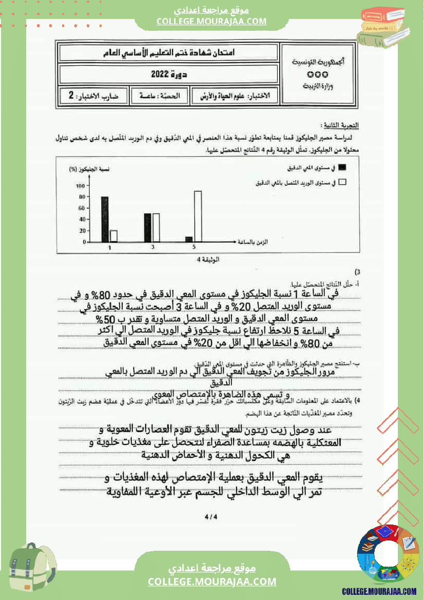 اصلاح اختبار مناظرة شهادة ختم التعليم الاساسي في مادة علوم الحياة و الارض لسنة 2022