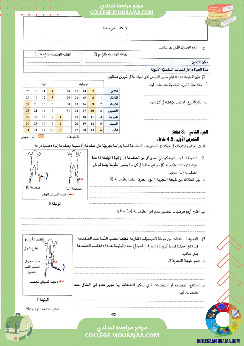 اختبار علوم الحياة و الارض مناظرة النوفيام سنة 2021