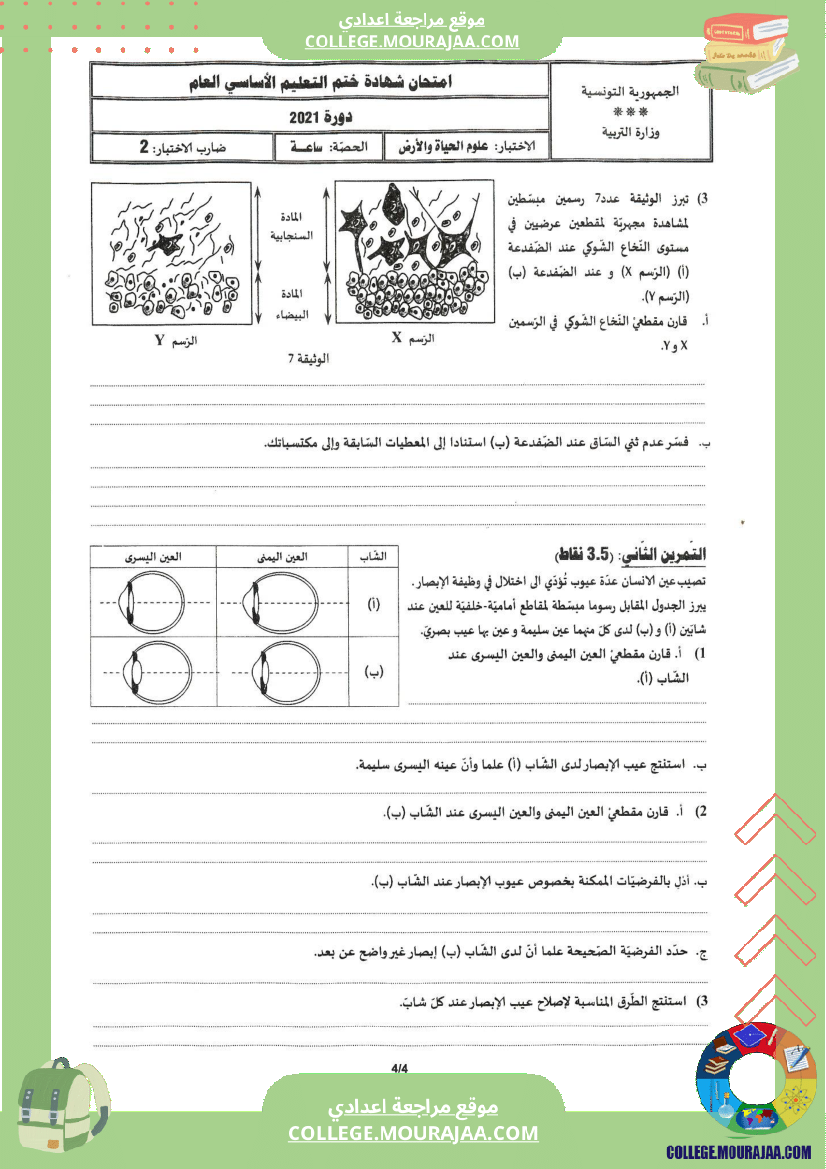 اختبار مناظرة شهادة ختم التعليم الاساسي في مادة علوم الحياة و الارض لسنة 2021