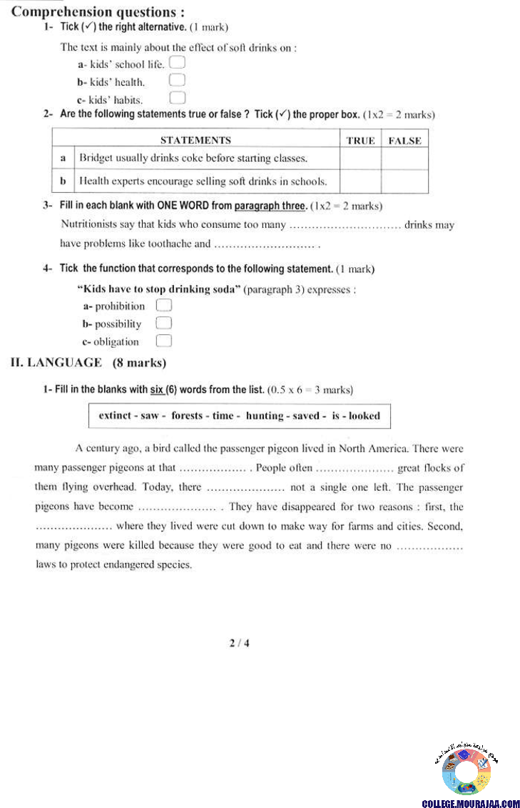 مناظرة شهادة ختم التعليم الاساسي في مادة الانقليزية لسنة 2013