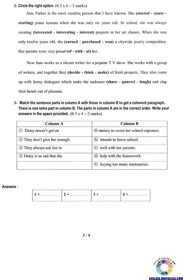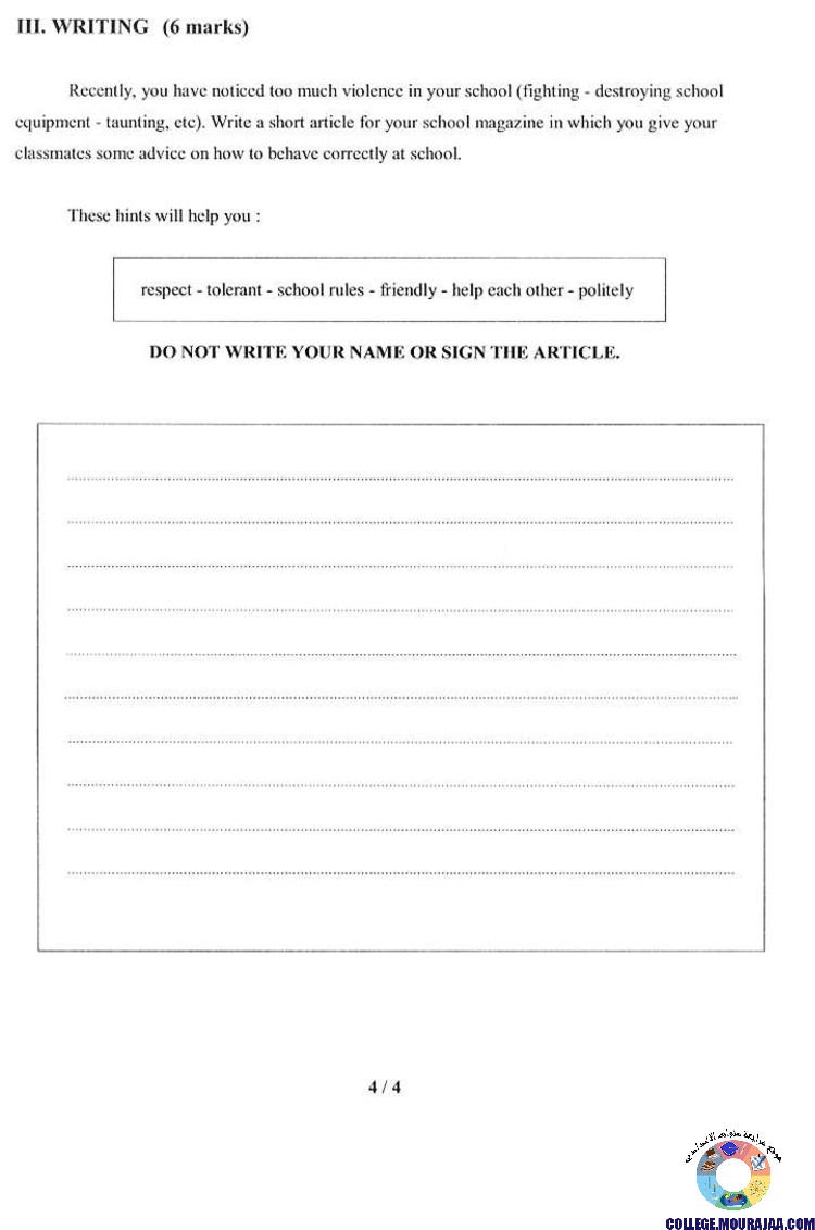 امتحان الانقليزية مناظرة النوفيام سنة 2013