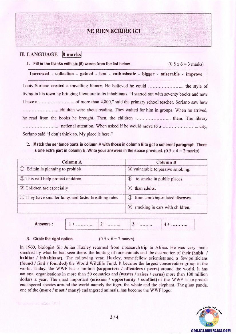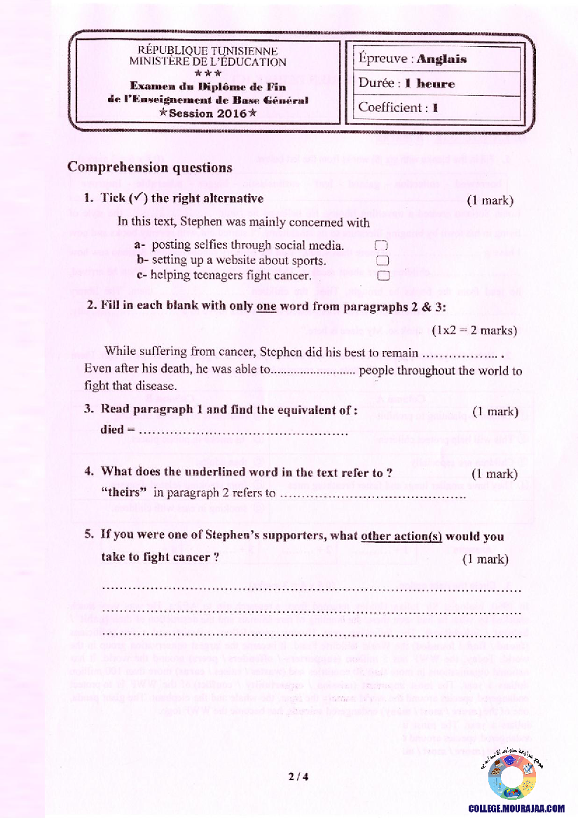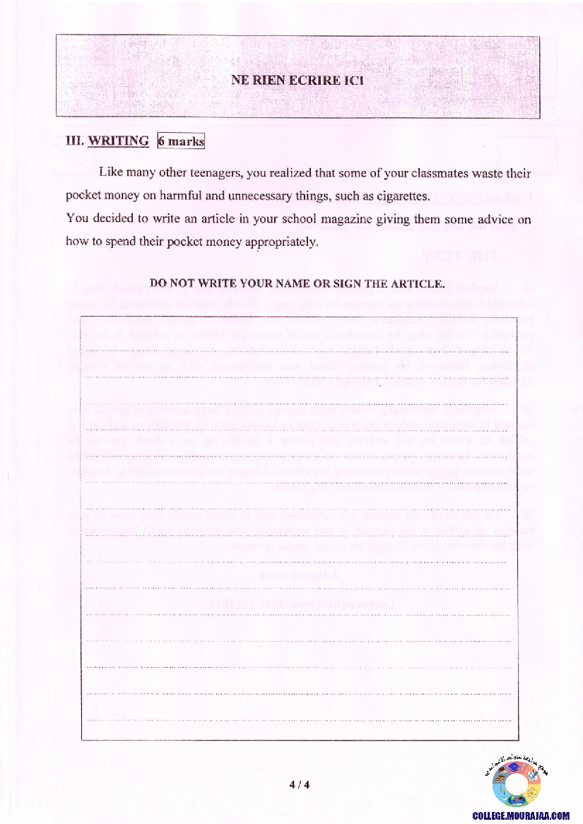 امتحان الانقليزية مناظرة النوفيام سنة 2016